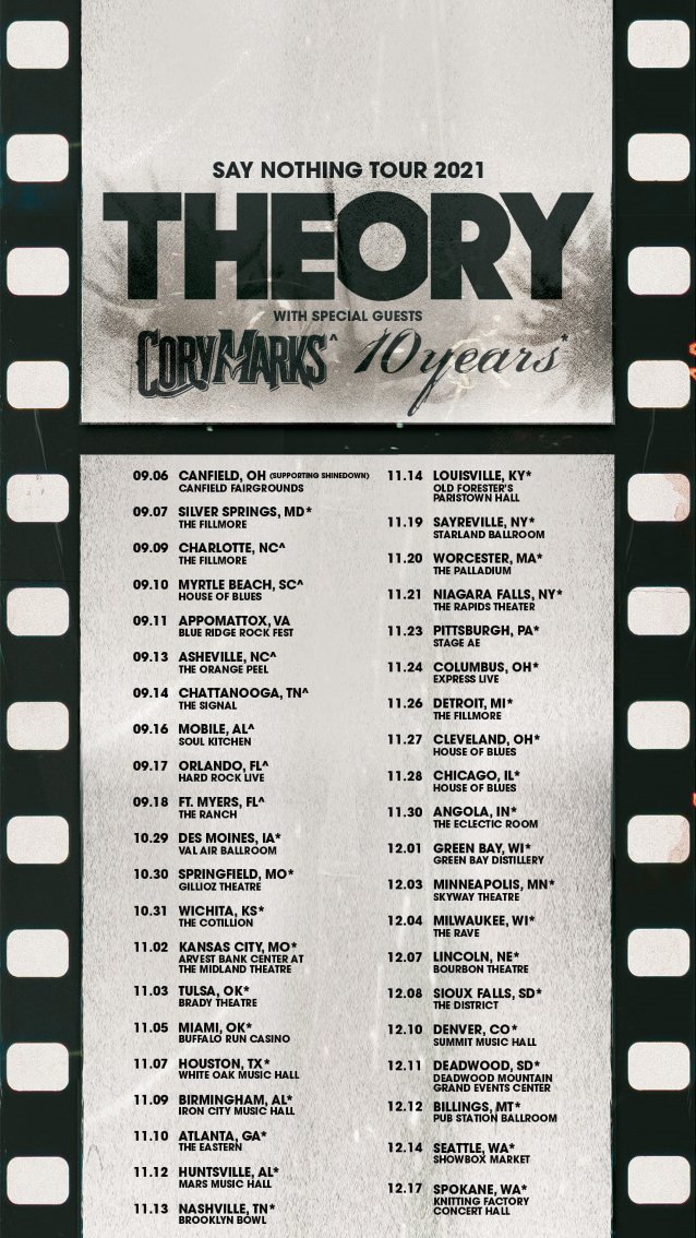Knoxville, Tennessee rockers 10 YEARS will miss the “next handful of shows” on their tour as the support act for THEORY OF A DEADMAN (a.k.a. THEORY) after Jesse Hasek tested positive for COVID-19, the disease caused by the novel coronavirus.