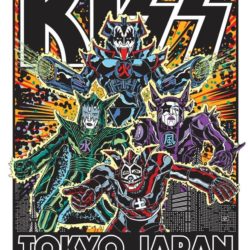 Kozik’s poster commemorating the legendary KISS performances from April 1, 2 and 4, 1977 in Tokyo, Japan, is the second design in the Echo “Kiss Poster Series”. This 11-color screen print measures 18″x24″ and is available in these limited-edition variations:
