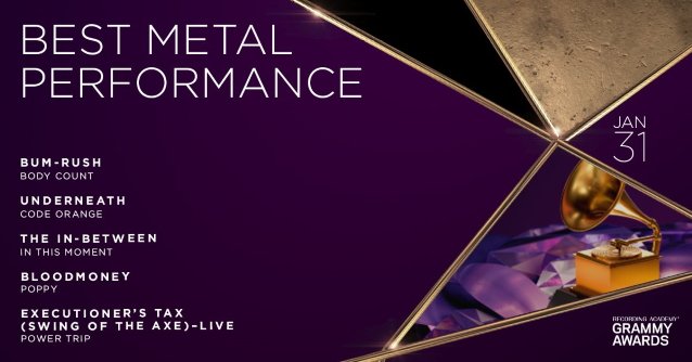 BODY COUNT was honored with a Grammy in the “Best Metal Performance” category in the pre-telecast ceremony at the 63rd annual Grammy Awards, which is being held tonight (Sunday, March 14) at an undisclosed building in Los Angeles. BODY COUNT was nominated for “Bum-Rush”, a track from its 2020 album “Carnivore”.
