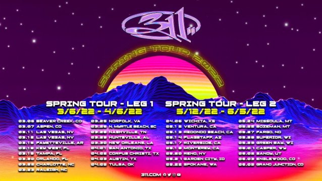 The 311 “Spring Tour” includes the 12th biennial “311 Day”, featuring two nights of extended performances in Las Vegas on Friday, March 11 and Saturday, March 12 (plus livestream), as well as appearances at the Tampa Innings Festival (alongside GREEN DAY and INCUBUS) and the Beachlife Festival (alongside WEEZER).
