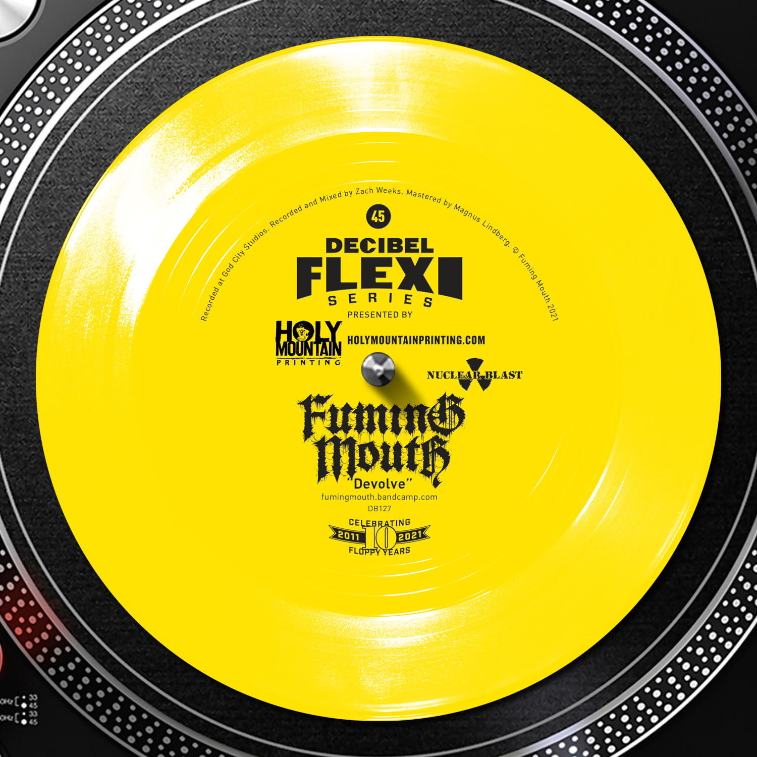 Death metal newcomers Fuming Mouth have caught many ears and banged many necks in their relatively short existence. With a debut full length and a new EP out all within the past two years, this Massachusetts quartet is blazing a path towards a very bright future. Fortunately for us, their most recent stop on that journey is the Decibel Flexi Series with an exclusive track. Titled “Devolve,” Fuming Mouth bring their forward-thinking brand of crusty death metal to this regressively named song. As always, the only way to secure your copy of this essential record is by being a deluxe Decibel subscriber. Sign up by Monday, May 3 at noon EST or you’ll be left behind!