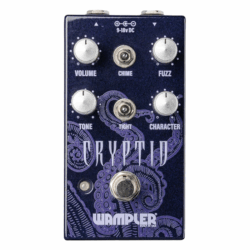 Since hitting the scene in 2007, Wampler has consistently made some of the better overdrive and distortion pedals on the market. Interestingly, though, other than 2013’s Levithan fuzz and its brazen sibling, the Fuzztration, which is a fuzz/octave pedal, Wampler’s product line didn’t feature many fuzz pedals. Since then, Brian Wampler has evolved as a pedal builder, and Wampler’s new Cryptid reflects a unique take on what a fuzz can be—employing a newly designed circuit with NPN and PNP transistors, and FETs.Wampler has described the Cryptid as a “fuzz for those who don’t like fuzz.” And certainly, it’s a versatile pedal that covers much more sonic ground than conventional fuzzes. In addition to delivering variations on familiar classic Fuzz Face, Tone Bender, and Big Muff sounds, the Cryptid can move into light overdrive or even chiming clean territory. A Fun House of FuzzThe Cryptid, despite the implied mystery in its name, is pretty forgiving. You could just set all the knobs at noon and you’d be good to go for any number of fuzz tasks and roles. But this is a fuzz of impressive potential, and every knob and switch—particularly the character knob and the tight and chime switches, and the way they interact—can profoundly reshape the pedal’s performance and feel.The character knob is a bias control that can shift the mood and responsiveness of the pedal significantly. When the character knob is fully counter-clockwise, the Cryptid is well behaved and focused. As you turn it clockwise, though, things get crazier. Once the character knob is around 2:00 you’ll start to hear sputtering textures that evoke tired, voltage-starved vintage units and more deliberately designed glitch fuzz.The tight switch lets you regulate how much bass is present in the signal and has a pretty significant impact on the tone. In the down position, it adds in a fair amount of bass. The middle position offers the least bass content and tightens up the sound, which brings out more overdrive-like colors. The up position is the ticket to maximum bass, and even with the fuzz knob set conservatively the Cryptid really is explosive and massive.The chime switch adds high end. The down position gives a little bit of chime, the middle position is relatively chimeless and has a darker quality, and the up position yields the brightest sounds. The less fuzz you apply to the signal, the more noticeable the chime effect will be. With the fuzz knob all the way counter-clockwise and the chime control switch in the up position, you get delicious, pronounced near-clean tones that fit the bill for Hendrix double stops and Stevie Ray Vaughn blues escapades.Brian Wampler’s ambitions in putting together the Cryptid—essentially encapsulating the character and tonalities associated with Big Muffs, Tone Benders, and Fuzz Faces, while leaving room for airy, cleaner tones and picking dynamics—were far-reaching. But there is ample evidence that he achieved his aims. Cryptid may not serve many purists searching for classic clone sounds, but it offers the chance to create more original sounds that have all the fire of those classics, and more polite tones to boot.