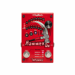 Digitech says its latest creation, the HammerOn pitch-shifting pedal, is “seven pedals in one.” That left me pondering what constitutes a “pedal” in this scheme. I think the more accurate and descriptive term may be “modes.” But those seven pitch-shifting modes deliver in really fun ways.Operationally speaking, the HammerOn is fairly straightforward. When you step on either of the sturdy-feeling footswitches, whatever note(s) you play morph instantly to a different pitch of your choice. But this simple premise still makes the HammerOn a compelling addition to the Wham’ Fam’.Mode MentalityHammer-on mode, which I essentially described above, is the most straightforward application of the pedal’s potential. But there is also an Impossible mode, which alternates between two different pitches, making once “impossible” fretboard maneuvers much more possible. Sequence mode strings together multiple pitch changes in different ways. And with any of these modes, you can add in your unaffected signal using the dry+ button or force the HammerOn to alternate pitches on its own with the trill button. According to the manual, these three modes, combined with the dry+ and trill buttons, account for the seven different “pedals” mashed together here.“I even came up with a pretty strange-sounding chorus so odd that I giggled out loud.”HammerOn’s modes, if not exactly independent pedals, are nevertheless capable of cool tricks. Certain pitch shift moves can work like a harmonizer, others like an alien 12-string emulator, and some like a capo that extends your guitar’s scale. In hammer-on mode, you hear plenty of the digital-icious glitchiness from the Whammy algorithm. You can also build sequences that evoke synthesizers, and it’s great, perverse fun to set the HammerOn to an odd interval like a flat 5th and smear otherwise pedestrian licks with a footswitch. I even came up with a pretty strange-sounding chorus so odd that I giggled out loud. The HammerOn has plenty of practical uses, but its real magic lies in how it nudges you into unconventional musical territory, encouraging you to loosen your grip on habits and familiar fretboard patterns—much like the original Whammy. Ultimately, it’s a great tool for shaking creativity loose.