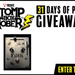 PG’s Joe Gore is giving you the chance to WIN his “Filth” pedal in today’s Stompboxtober giveaway! Enter below!Filth fuzzMan, I love those mad scientist fuzzes with too many knobs! I’ve collected them for decades and used them on a zillion sessions. It got to the point were people were hiring me specifically to make those sort of farting, fried-circuit tones.But the downside of those complex fuzzes is that they’re a little too wide-ranging, with many settings you’ll probably never use. It’s easy to spend 20 minutes dicking around with the dials without nailing the perfect tone. I’ve always wished for a wild, highly variable fuzz that was a bit more “curated,” with easier access to the tones you’re likeliest to use.That’s what inspired the Filth Fuzz. It’s only got four controls, but it’s a cornucopia of cool, quirky, and usable fuzz flavors.The drive and level controls do what you’d expect. But unlike many fuzz drive controls, this one sounds great throughout its range. Extreme settings are molten-lava thick. Lower settings are like…slightly cooled lava, maybe?But the real action is in the two sliders. They’re tone controls of a sort, but not in the usual way. Most fuzz tone controls are tone-sucking passive circuits situated downstream from the fuzz effect. But here, the sliders alter the voltages at the transistors, radically changing not only the tone, but also the timbre, response, attack, sustain, and compression. In other words, the sliders radically alter the fuzz’s core character, as opposed to simply EQing a single core tone.Stompboxtober Day 23 Joe Gore Pedals