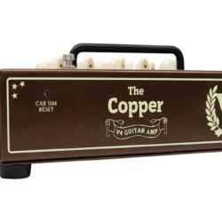 Following the success of Victory’s V4 all-valve preamp pedal line, designer Martin Kidd decided to pack the same preamp into all-in-one mini amp versions of the Jack, Sheriff, Copper, and Duchess. The V4 The Copper Guitar Amp reviewed here pairs a 4-tube preamp with a solid-state, 180-watt output stage—all in a package small enough to fit into your gig bag’s accessories pouch. Whether used on the floor alongside your pedalboard or at the backline with remote switching, it offers a boatload of flexibility.Essential ElementsThe Copper Guitar Amp is a true, stand-alone tube/solid-state-hybrid amp with surprisingly deep functionality. The unit includes six built-in Two Notes cab sims, which can be routed to the XLR output and balanced line out, or the XLR exclusively. There’s also a headphone output. And any of these outputs can be used without plugging into a traditional guitar speaker cab (the amp is load-protected). The six Chris Buck-created sims can be edited via Two Notes’ Torpedo Remote software, with the unit connected to your computer via USB, or the software can be used to load other Two Notes or third-party sims.Controls include gain, tone (a voicing control for the upper-mids and highs), master, TB (treble boost) master, reverb (digital), bass, middle, treble, sim preset, and sim level. The treble boost is engaged via the switch on top of the amp, but it can also be activated, along with the reverb, via an optional footswitch. Curiously, the boost is governed via an output-stage control, which, as we’ll see, diminishes the amp’s flexibility a bit.Extra connectivity includes guitar input, effects send and return (for a loop between preamp and output stage), line out, footswitch, XLR cab sim out, and speaker out (suitable for loads of 4/8/16 ohms at 180/100/50 watts, respectively). Victory also thoughtfully included a 9V DC/500 mA output to power external pedals, and there’s an on/off switch for the internal fan.The V4 The Copper amp is rugged. It’s built into an aluminum chassis with a metal carry handle on top and vents at either end. The tube complement eschews traditional 12AX7s in the preamp. Rather, it includes three CV4014s (aka EF91s, a 7-pin preamp tube most commonly seen in a popular headphone amplifier) and a one 7-pin EC900 (6HA5).Police SquadI paired the V4 The Copper Guitar Amp with an open-back 1×12″ cab with a Scumback J75 speaker, as well as a recording interface, studio monitors, and Audio-Technica studio headphones. How did it fare? The short answer is that this little box delivers a dynamic, articulate, authentic tube-amp-playing experience, and a wide range of moods within the Vox tone family.Many makers chasing Vox-like voicings via alternative amp architecture are let down by flat, muddy, or brittle-sounding results. But this effort from Victory sits comfortably in the “proper tube-amp camp.” Ironically, The V4 Copper amp achieves its most accurate Vox-like performance—at least to my ears—through headphones or studio monitors and the built-in cab sims, which include an element of power-amp modeling. With a traditional guitar cab, the unit still sounds very good, but the amp’s hybrid nature is more easily belied by the absence of an EL84 output stage’s harmonic complexity and the compression you hear when pushing an AC15 or AC30 to the edge of breakup and beyond. For many, the compromise will be a fair trade for portability and convenience. Undercover With the Vice SquadThe Copper V4 Amp boasts one of the better amp-loaded digital reverbs I’ve heard in a while. It’s got a nice taper from subtle space to lush cathedral-like atmospherics, it’s warm, and the decay is realistic. The EQ section is less obviously powerful. The tone control is effective but subtle (“mood” or “color” might be better names for the function). The treble boost certainly adds more hair and drive to the output. But from my perspective, the treble boost’s adjustment via the TB master control—there is no boost gain control—is counterintuitive, because it means both top boost gain and output level are tied to a single knob that also interacts with the gain control in the first gain stage. There’s also no independent adjustment available for crunch- or lead-gain settings.Given this configuration, you can’t easily dial in an edge-of-crunch tone from the standard gain control and push it over the edge with the boost without getting pretty hairy and fuzzed out. Adding an independent lead channel of sorts would have provided far more flexibility. But these options would also mean more space and weight, which is at a premium here. In spite of that, the treble boost function is still a real bonus that a lot of amps lack. And there are many good sounds to be found by putting it to use.The VerdictThe V4 The Copper Guitar Amp is a cleverly designed bundle of Vox-voiced jangle and chime in an impressively compact package. The general tone is lively and dynamic, and onboard Two Notes cab sims increase its usability dramatically. The controllability of the boost/lead function is a little compromised with just one control, but there’s a lot of power and potential to tap into in the V4 The Copper Guitar Amp—especially when you factor in the size and fair price.