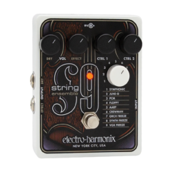 Electro-Harmonix is a giant among pedal builders. What’s inspiring about EHX is that they’ve never let that stature keep them from taking risks. Take the company’s keyboard- and synth-inspired pedals: the B9, KEY9, MEL9, and Synth9. Each has been a success, but none were sure-fire hits. Guitar-based synthesis at accessible consumer prices is not easy. Yet in each case, EHX created something playable and useful to guitarists. And if they didn’t always achieve perfect replication of the keyboard and synth instruments that inspired them, the pedals often prompted new ways of relating to a guitar and new possibilities in performance and composition. The S9 String Ensemble is among the most realized of these pedals. Its sounds are rich and creatively executed. And the pedal is compelling in the truest sense of the word: It makes it virtually impossible to not consider new songs, new arrangements, and new styles as you interact with it.Electro-Harmonix is a giant among pedal builders. What’s inspiring about EHX is that they’ve never let that stature keep them from taking risks. Take the company’s keyboard- and synth-inspired pedals: the B9, KEY9, MEL9, and Synth9. Each has been a success, but none were sure-fire hits. Guitar-based synthesis at accessible consumer prices is not easy. Yet in each case, EHX created something playable and useful to guitarists. And if they didn’t always achieve perfect replication of the keyboard and synth instruments that inspired them, the pedals often prompted new ways of relating to a guitar and new possibilities in performance and composition. The S9 String Ensemble is among the most realized of these pedals. Its sounds are rich and creatively executed. And the pedal is compelling in the truest sense of the word: It makes it virtually impossible to not consider new songs, new arrangements, and new styles as you interact with it. Most striking is the pedal’s capacity for translating complex chords in patches that feature more virtual instruments and/or complex overtone clusters.Don’t Tell the String Players UnionThe S9’s sounds span a range of relatively organic and synthesized string sounds including voices inspired by the Arp Solina, Crumar Performer, Roland Juno series, Mellotron, and Vako Orchestron. The pedal also utilizes EHX’s Freeze effect in combination with three of the voices in order to create string-based pads. Impressively, managing these many sounds is simple and intuitive.The dry and effect knobs act as a little mixer for both signals. There are also effect and dry outputs. You use the former if you’re running a single amp or DAW. The dry output sends a buffered signal that bypasses the effect entirely and enables all kinds of wet/dry mix possibilities when used with a second amp or second input channel in a DAW. The potential to create huge, complex, and cohesive sounds with these two output options alone is very cool. The ctrl 1 and ctrl 2 knobs change function depending on the voice that you select with the white patch knob. Some players might lament the limited control of synth parameters, but the economy of design here is equally appealing in my book.Pocket SymphoniesThe biggest challenge in working with a pedal like the S9 is adjusting the way you play relative to synthesis. The good news is that latency is rarely a problem on the S9, unless you’re trying to play rapid-fire Chet Atkins licks. Most striking is the pedal’s capacity for translating complex chords in patches like symphonic and floppy that feature more virtual instruments and/or complex overtone clusters. In fact, full-spectrum chords with big bass notes and treble detail seem to summon the best and most beautiful sounds from the S9. Anyone familiar with the glitchiness and latency in old MIDI rigs is likely to be bowled over by how absent those issues are in an affordable and simple stompbox.Each voice on the S9 is full of possibilities. The symphonic voice is not a perfect emulation of a real orchestra—you still hear traces of digital synthesis that are less than flattering to the high-mid frequency oriented “instruments.” But darkening the tone and bumping up the sustain via the ctrl 1 and ctrl 2 creates a cool, hazy version of a string section sound. The symphonic voice—and others— also benefit from volume-swell techniques, which soften pick attack and stray extra-loud transients that often pop up in the high mids.The approximations of string synths are my favorite S9 sounds. Curiously, these modes often do a better job of conveying orchestral moods than the symphonic voice. That perception is totally subjective; my view is shaped by an enthusiasm for archaic string synths and enjoying the suspension of disbelief intrinsic to using them. Whatever your view, these voices are fun. The June-O voice sounds awesome in the context of ominous bassy triads. And it’s easy to imagine slow-phasing AARP sounds flipping a song on its head as part of a bridge or chorus. My favorite voice though is the floppy patch, which approximates the gauzy sounds of a vintage Orchestron, which used optical discs like a Mellotron used tape. The blurrier interpretations of symphony sounds, with their softer transients and more glued-together picture of multiple instruments, are well suited to guitar phrasing.The VerdictThe S9 won’t replicate the sound of a symphony string section the way a Hollywood soundtrack artist’s workstation will. Nor does it nail the sounds of an Arp Solina. But you can chalk up most of the subjective shortcomings to the inherent limitations of a guitar-synth interface. In light of that constraint, the S9 and its core sounds are impressive. As with any synth pedal, you have to be open-minded about technique and what constitutes accuracy. But for players with less defined musical boundaries, the S9 can be a prompt for wild, new musical directions.