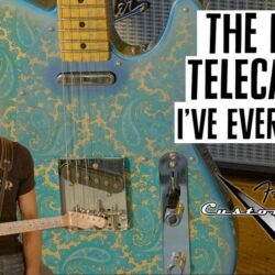 Pablo Picasso had his famous Blue Guitar. Now, so does Brad Paisley, courtesy of the Fender Custom Shop. Last Wednesday, Paisley unveiled his latest signature model, the “Lost Paisley” Telecaster, at a Q&A session and mini concert at Fender’s East Nashville headquarters. The instrument is an exacting reproduction of Paisley’s own, rare 1967 Tele in a stunning, practically glowing, blue-flower paisley finish, with custom-wound Seymour Duncan pickups and a bender that can be set to the B string or, as Paisley prefers, the G string. Spoiler: It looks and sounds badass, even with Paisley playing through a Fender Champ, which you’ll experience when you watch our video. The street price for this limited edition instrument is $7,000.In 1968, Fender introduced the short-lived Paisley Red and Blue Flower finish options on the Telecaster and Telecaster Bass—drawing influences from the “Summer of Love.” These instruments were adorned with decorative Cling-Foil and finished with a matching metallic burst, highlighting the vibrant colors in the intricately patterned paper. Many of these guitars fell victim to the unstable mix of thick paper, weak adhesives, polyester clear coats and time, eventually showing major chipping and flaking, driving players to refinish their guitars. Others we simply repainted to cover up the polarizing original finish. Once discontinued in late 1969, these guitars and basses seemed to vanish into the ether.Over the following six decades, these unsung heroes of free spirit movement would pop up in vintage guitar shops and for sale online, eventually beginning to accrue a cult-like following. Call it nominative determinism or sheer luck, country music singer-songwriter and Telecaster evangelist Brad Paisley became enamored by these misfit late-‘60s guitars, ultimately becoming the modern-day face of any and all paisley-themed finishes.Flash forward to present day, and through a fortuitus twist of fate, while Brad was studying guitar building, he was gifted what looked to be lightly used sheets of Blue Paisley patterned Cling-Foil – straight from the ‘60s. Driven by his newfound obsession over this Blue Paisley Cling-Foil, Brad teamed up with close friends Zac Childs and Joe Glaser to not only refinish one of his road-tested 1967 Telecasters, but to meticulously recreate vintage-accurate Paisley Cling-Foil paper.In partnership with Brad Paisley, the Fender Custom Shop is proud to introduce the Limited Edition 1967 “Lost Paisley” Telecaster. The swirling, pulsing and blinding carousel of blues, greens and silvers of the Blue Paisley Relic finish brings a perfect balance of vintage charm to the unique alder, paulownia and spruce Telecaster body. Featuring a custom ‘60s Oval “C” shaped maple neck and round-laminated maple fingerboard, Seymour Duncan “Lost Paisley” Telecaster Pickups and a Glaser “G” Bender System, this guitar looks, sounds and feels like Brad’s #1 Tele.Other premium features include 7.25″ (184.1 mm) radius, 21 narrow tall (6105) frets, Modern Tele wiring, 3-way switch, ’67 Telecaster bridge with Glaser Bender System, vintage-style tuners, bone nut, wing string tree, period-correct Fender strap and certificate of authenticity.
