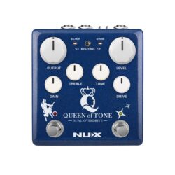 NUX’s Queen of Tone dual overdrive pedal is, at least in name, a clear nod to Analogman’s iconic King of Tone—which is, in a very general sense, a highly modified mash up of two Marshall Bluesbreaker circuits. However the Queen of Tone deviates from Analogman’s approach to the dual-overdrive concept in a significant way: The pedal retains some Bluesbreaker lineage in the form of NUX’s own Morning Star overdrive, a Bluesbreaker-style pedal that makes up one half of the QOT. But the other half of the two-overdrive set up is the Horseman, NUX’s version of the Klon Centaur.The Morning Star side boasts controls for drive, tone, and level, while the Horseman’s control set consists of gain, treble, and output knobs. A routing switch enables you to switch the order of effects, and a toggle on the crown of the pedal selects true or buffered bypass. A second adjacent mini-toggle engages an input FET Stage that adds even more gain. There are also two hidden features of sorts: Holding down the Morning Star footswitch engages Shine mode, which adds treble boost and clarity. Pressing and holding the Horseman side, meanwhile, activates Silver mode, which extends the gain range of the Horseman circuit. (“Silver” refers to the silver Klon Centaur, which is typically considered treblier and sometimes raspier than the gold iteration).The two circuits complement each other well and stack seamlessly.