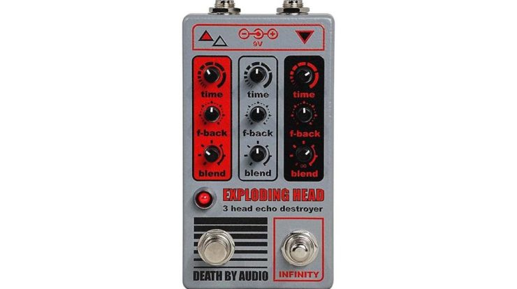 If you don’t follow the many-splendored musical world of noisy psychedelia, you might be surprised to know that Oliver Ackermann, co-founder of the sometimes psychotic but often thrilling stompbox concern Death By Audio, also helms the equally psychotic and thrilling band A Place to Bury Strangers. If you’ve seen APTBS live, you’ll understand much about what makes Death By Audio pedals unconventional. APTBS is generally a sensory overload experience. They are loud, sonically confrontational, and capable of oscillating between chaos and dark beauty. Last year marked the 13th anniversary of the band’s breakthrough LP, Exploding Head, and, in typically perverse fashion, Ackermann elected to celebrate that most unlucky of anniversaries with a triple delay named in the LP’s honor.
