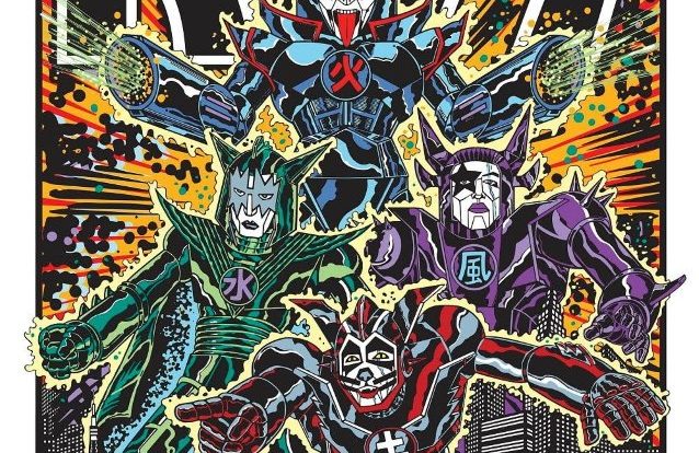 “For this amazing opportunity, I wanted to combine the raw energy of a great comic book cover with the power of KISS and rock and roll,” said Kozik. “It being for a show in Japan, I naturally had to make the giant robots! This all in a style reminiscent of the era in which the show was actually performed.”