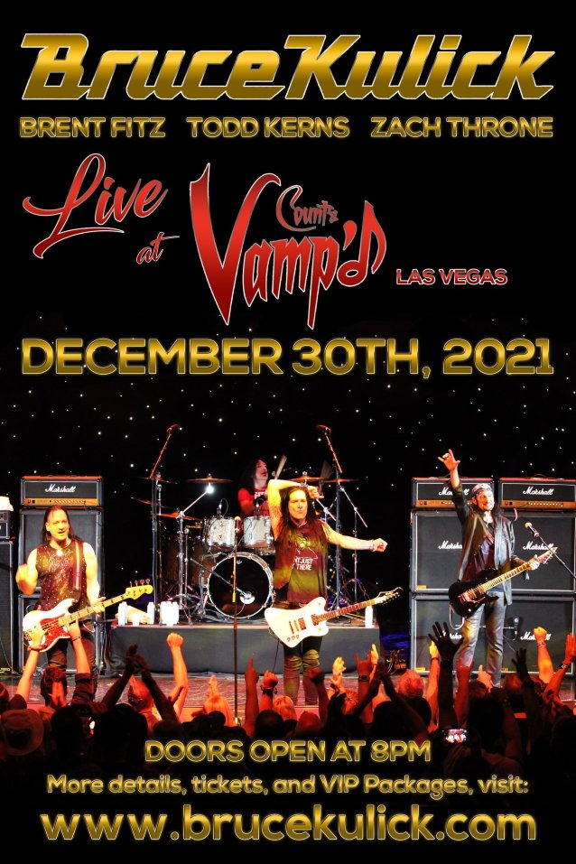KISS drummer Eric Singer joined his former bandmate, ex-KISS guitarist Bruce Kulick, during Bruce‘s concert last night (Thursday, December 30) at Count’s Vamp’d in Las Vegas, Nevada. Singer was filling in for Kulick‘s regular drummer Brent Fitz who was apparently unable to make the gig because he contracted COVID-19.