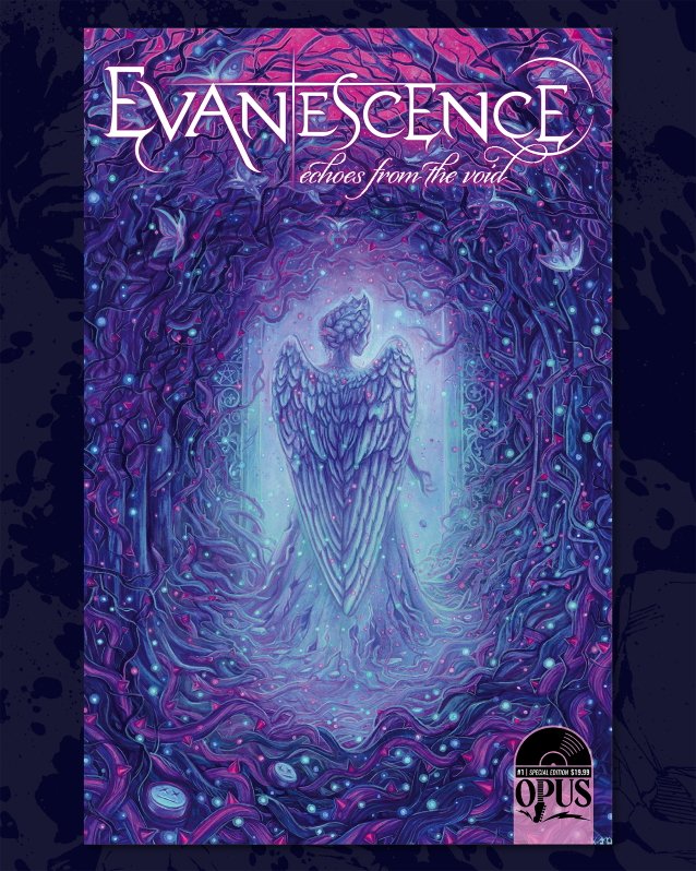 Combining bandleader Amy Lee‘s love of visual arts, fantasy-inspired graphics, and graphic novels with the narrative power of EVANESCENCE‘s music, the series is being developed in close collaboration with Amy as she oversees the creative direction of the art and stories. “Echoes From The Void” begins as a five-issue series, with each issue containing stories based on two or more of EVANESCENCE‘s songs, presented in a variety of visual styles and mediums. Issue #1, available in limited-edition, includes two stories inspired by the songs “Better Without You” and “Wasted On You”, from “The Bitter Truth”, with tales written by Carrie Lee South and Blake Northcott (“Arena Mode” saga, DC‘s “Catwoman”). The issue will feature illustrations from Hugo Award-winning artist Abigail Larson and highly esteemed painter Kelly McKernan.