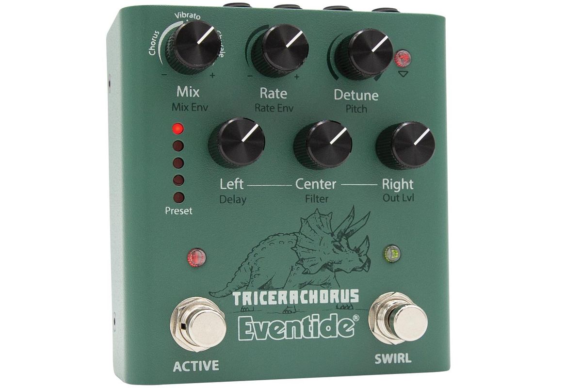 After a period of relentless ubiquity, heavily chorused guitar tones went the way of Aqua Net. But chorus made a comeback, and even rare rackmount versions of the effect have been distilled into pedal form. Eventide does a swell job cramming complicated effects into compact stomps. This time around, they’ve fit the giant tones and deep functionality of rackmount tri-stereo chorus into the pedalboard-friendly TriceraChorus.