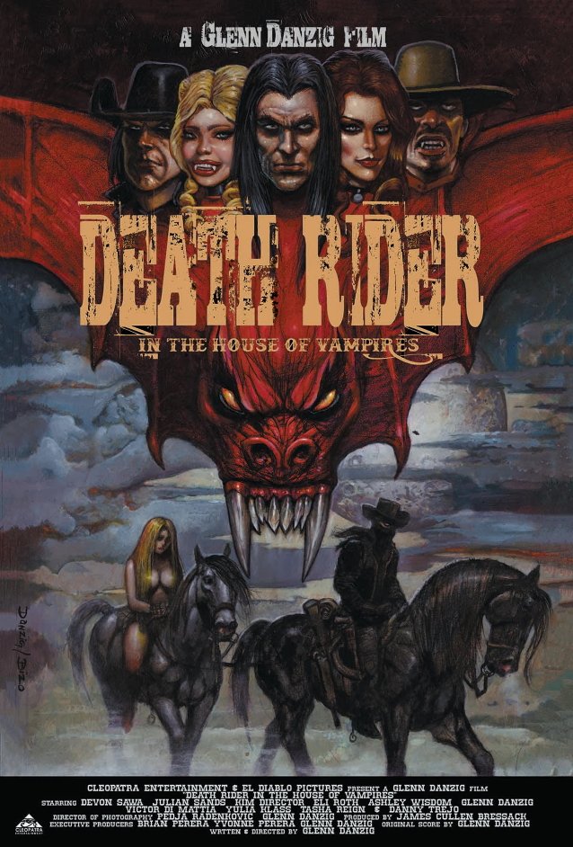 “Death Rider In The House Of Vampires” stars Devon Sawa as the Death Rider, Julian Sands as Count Holliday and Kim Director as Carmilla Joe. Joining them are Eli Roth as Drac Cassidy, Ashley Wisdom as Mina Belle, Victor DiMattia as Kid Vlad, Danny Trejo as Bela Latigo, and Danzig himself as the vampire gunslinger Bad Bathory.