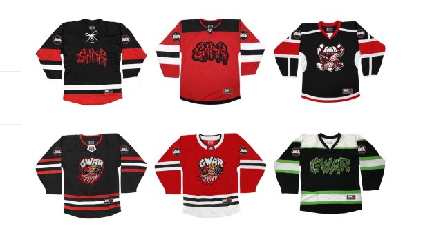 The Gwar X Puck Hcky collection includes pro-level quality hockey-themed items like crested hockey jerseys, with more to come soon.