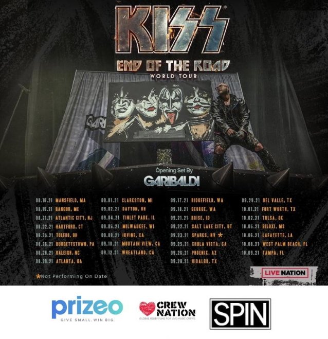 KISS is partnering with world-renowned visual artist David Garibaldi, SPIN and leading sweepstakes platform Prizeo to raise funds for Crew Nation at the North American stops on the final leg of their “End Of The Road” tour.