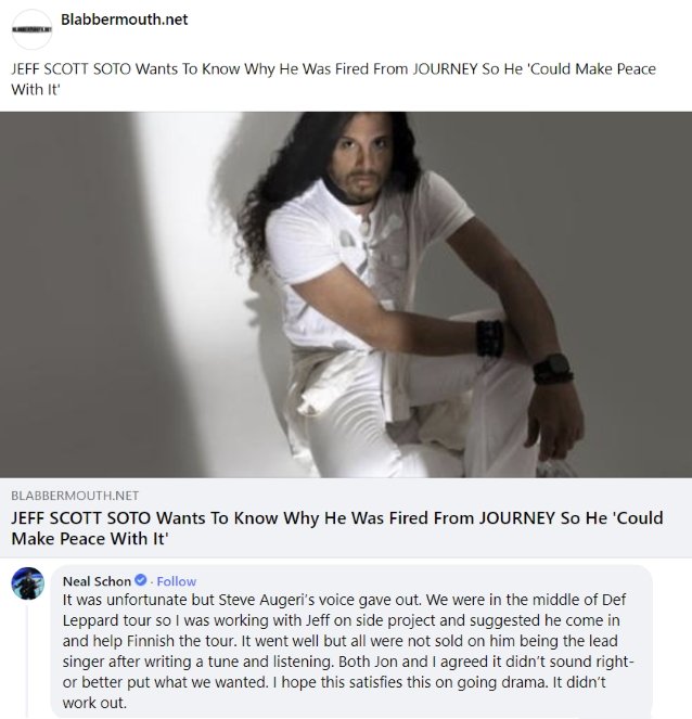 JOURNEY guitarist Neal Schon has explained Jeff Scott Soto‘s dismissal from the band, saying the singer’s voice wasn’t what he and keyboardist Jonathan Cain wanted.