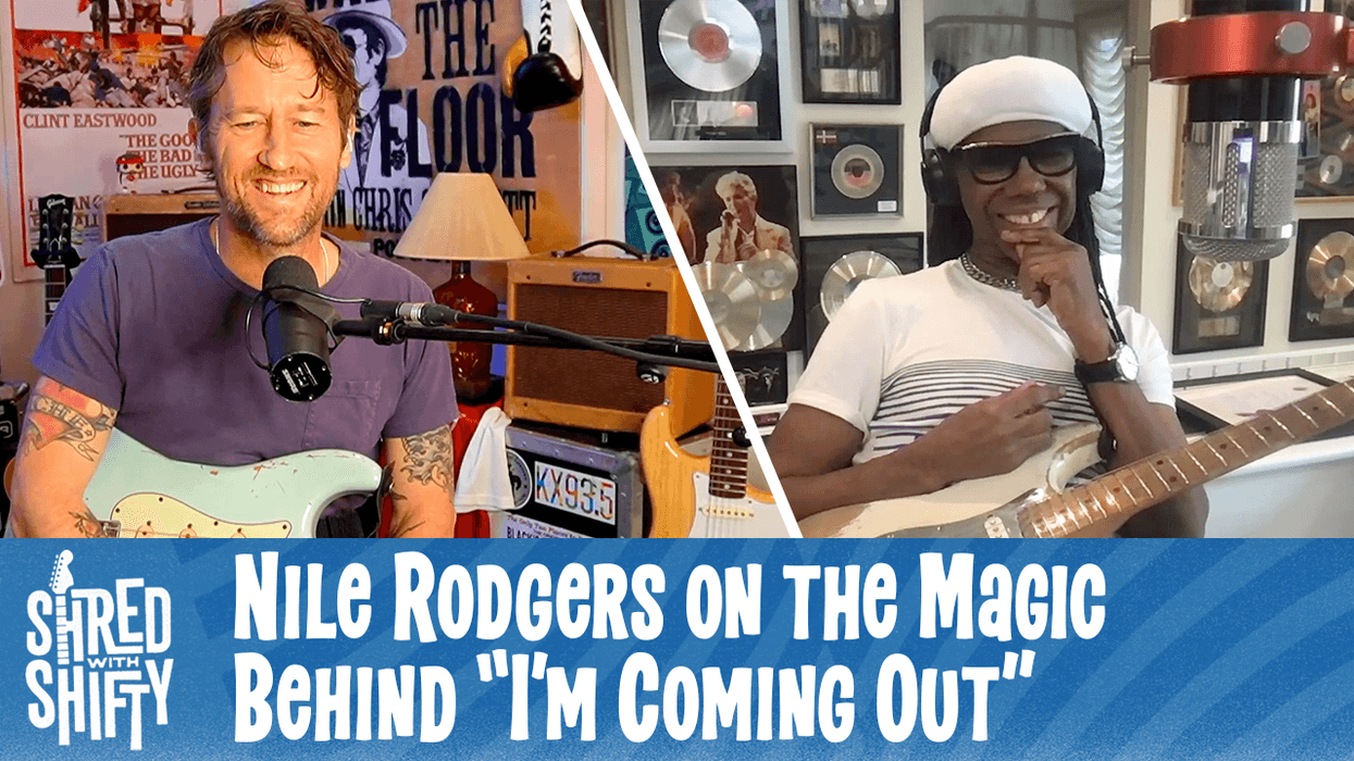 Nile Rodgers gives Chris Shiflett the full, eyebrow-raising story of how he and bassist Bernard Edwards penned Diana Ross’ hit, “I’m Coming Out.” The duo had tried the song’s drumbeat on many other tracks—they nicknamed it “the hesitation waltz”—but its playful rhythm didn’t land until they wrote the song for Ross. Rodgers explains that his neck-pickup “chucking” on the song, which is most clearly voiced on the highest three strings, was structured around the vocal melody. “I’m a very hook-oriented guy,” says Rodgers. “I believe in reinforcing the thing that I believe is melodically the motif that the house is built on.”