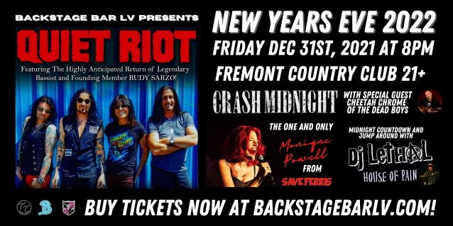 Two days prior to the gig, Garni took to his personal Facebook page to write: “Here’s what I’m doing NYE. For the first time in 43 years, I will be doing a song with QUIET RIOT! I am very excited about it and hope to see many of my Vegas friends! And, you can’t beat $30 to do anything in Vegas on NYE! Come on down and help me bring in the new year! Be advised: if you comment with any of that shit about ‘this isn’t really QR,’ you will be GONE as soon as I see it. Besides, Rudy‘s back. Ain’t that enough?”