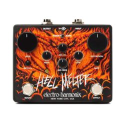 The manual for Electro-Harmonix’s Hell Melter proclaims that “a good starting point is to turn all knobs … to their maximum positions and play the heaviest riff you’ve got.” That bit of instruction, and the pedal’s semi-satanic $176.66 price tag, should give you a hint about what the Hell Melter is designed to do. But underneath all that underworld-oriented swagger is a pedal that—like the Boss HM-2 that inspired it—covers more sonic ground than you’d expect. Chainsaw MassacreThe first hint at the Hell Melter’s versatility is in its control panel. Many pedals favored by metal players simply have volume, tone, and gain controls. The Hell Melter, on the other hand, features eight knobs: distortion, master, high, low, mid, dry, a knob for dialing in specific midrange frequencies, and a noise gate control. There is also a toggle switch for normal or burn mode (the latter is a more open, less compressed voice), a bypass footswitch, and a second footswitch for a boost circuit.The Hell Melter, of course, is designed to produce the “chainsaw” distortion tone that is characteristic of Swedish death metal, and right off the bat you can feel the aggression the pedal is capable of. Using an Ernie Ball/Music Man Axis Sport and a Mesa/Boogie Trem-O-Verb combo, I used the suggested “everything all the way up” setting and was greeted with the evilest tone you can imagine. But there was still a ton of clarity with everything maxed. Output from the 6th string is defined and packs a wallop, and power chords are razor sharp. The built-in noise gate is an excellent extra that can keep things amazingly noise-free throughout the carnage. “For all the ominous imagery, the Hell Melter is no one-trick pony.”For all the ominous imagery, the Hell Melter is no one-trick pony. After all, David Gilmour dabbled with the Boss HM-2. Punk producer supreme Kurt Ballou is a fan of the HM-2 as well, which should tell you something about the range of the Hell Melter, which has a more versatile control set. Sure enough, classic-rock guitar sounds are easy to find and sound impressive. In this context, I liked using the dry level knob to blend in more clean, natural guitar tone. This makes individual notes even more articulate while sacrificing little in the way of aggression. The Hell Melter also offers what can sometimes seem like infinite sustain. And with a bit of delay, bends sound especially lyrical. While you might suspect that the boost function is akin to tossing gasoline on an already raging fire, it’s actually quite useful for delineating between rhythm and lead sounds. The transition between the two modes feels seamless. There’s no pop when you engage it, and the factory-set boost level is perfect for adding drama without spinning out of control. If you need a little more or less boost, there’s an internal trimmer.The VerdictThough you might expect some allusion to darkness and evil to wrap up this review, “fun” is actually the first word that comes to mind when I consider the Electro-Harmonix Hell Melter. If metal styles are your thing, the Hell Melter probably has more gain than you’ll ever need. But the pedal’s controls mean you can sculpt anything from trebly thrash sounds to warmer, more mid-focused classic-metal vibes. The Hell Melter hits the mark on the price-to-performance ratio, too. And at that devilish price, which includes a power supply, the Hell Melter is a steal.Electro-Harmonix Hell Melter Distortion Pedal