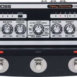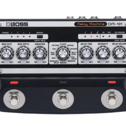 When you see a pedal as bristling with as many controls as Boss’s new DM-101, you can usually assume it’s digital. But the DM-101 Delay Machine is a true analog, bucket-brigade delay. Its functionality just happens to be enhanced by a digital brain. This combination enables familiar conveniences, like presets and tap tempo. But clever application of digital control also makes it possible to reshape the DM-101’s voice by adding or subtracting active BBDs or routing individual BBDs and their feedback loops to different points in a stereo image. The resulting palette of possible sounds is impressive and often addictive.Echos Spanning AgesOutwardly, the DM-101 is an homage to their first analog delay, the DM-1. And Boss did a favor for vintage-oriented stompbox aesthetes by designing the Delay Machine around Boss’s beautiful 1970s enclosure shape. But the old-school styling has practical benefits, too. The functions are clearly labeled, and the knobs are spaced so you can manipulate the controls in real time much more effectively. It’s a pleasure to use on a desktop, which extends its usefulness to the realm of production, mixing, and doing double-duty with keyboards and other table-top instruments.The controls themselves are largely straightforward. There is a 3-knob section that governs delay time, repeats (called intensity here), and an echo volume or wet/dry mix. The opposite side of the unit features two knobs for modulation depth and rate, as well as a variation knob that regulates a secondary function specific to each of the DM-101’s 12 voices. The voices include six modes for mono applications and another six for use in stereo mode. The six mono voices offer a lot of variety, including a DM-2-inspired mode, another that approximates the sound of multi-head tape delays, and a modern mode that sparkles with extra high end. Players that don’t use stereo rigs—and it’s safe to say they are a majority—may be a little puzzled by the decision to dedicate half of the voices to stereo function. But they still offer different, if less complex, textures in mono that are worth exploring.“The stereo modes serve as thickening agents of a sort, adding animation and dimension on top of the extra girth provided by any two-amp setup.”The remaining controls and functions are similarly simple to navigate. The tap division control offers nine modes ranging from dotted half-note settings to eighth-note triplets. A second push button saves the four onboard presets (expandable to 127 via MIDI), while an adjacent set of lights indicates the preset number or, in multi-head mode, the pattern of selected heads.The Delay Is in the DetailsDifferences between the DM-101’s voices are easy to hear, though at first the variations may seem subtle. The classic mode offers up to 1200 ms of delay, using more of the DM-101’s eight available BBDs, which might ordinarily cause some degradation in fidelity. Here the repeats are relatively warm. Though equivalent delay times in the vintage DM-2 mode, which tops out at 300 ms and presumably uses fewer BBDs in the delay chain, do sound slightly thicker, richer, and a bit darker. The modern mode, which has a maximum of 840 ms of available delay, is much brighter, lending some of the snap and cut of a digital delay. In all three of the modes, the variation knob changes the shape of the waveforms that make up the modulation. The multi-head setting offers abundant creative vectors thanks to the many rhythmic patterns the mode generates and the compositional and riff-writing moves it provokes. Non-linear and ambience modes, meanwhile, toy with the possibilities of shorter delay times.The stereo modes work best, of course, when you give them room to breathe, meaning slow, spacious, and airy chord progressions and quick percussive stabs. Even if you don’t incorporate these techniques, though, all of the stereo modes serve as thickening agents, adding animation and dimension on top of the extra girth provided by any two-amp setup. But of the stereo modes, dual mod and pan offer the boldest stereo effects. The former generates a liquid, woozy, submarine texture that would sound fantastic recorded in stereo, while the pan sounds delectable and alive in even the most intimate spaces.The VerdictAt $499, the DM-101 is a big-ticket item. There is no doubt that the analog design lends warmth to these echoes in the same way any great BBD-based circuit does. And when you consider other analog delays with enhanced digital control, the EHX Deluxe Memory Man 1100-TT, for instance, the DM-101’s price does not seem outlandish. Whether you can make the most of the investment may depend on the extent to which you use the more unusual modes, the degree to which you utilize the stereo features, and how they fit your playing style.Boss DM-101 Delay Machine Pedal