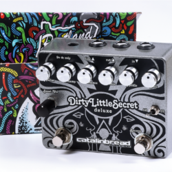 Designed to offer the ultimate Marshall Plexi emulation and fully-customizable amp-in-a-box experience.Catalinbread’s original DLS circuit has been tweaked and upgraded throughout, now featuring a phase inverter, power amp sim and output transformer as well as some new features and the most requested modifications for the original. One such addition is a toggle switch on the outside to select between Super Lead and Super Bass modes, and they’ve also externalized the Presence knob to easily dial in your preferred Marshall flavor. Also added is a piece of the Dirty Little Secret—a single preamp tube simulator—as a built-in boost circuit that can be used independently of the main circuit. You can run the boost and DLS in any order you like; put the boost before the DLS for a high-powered saturated tone or after to pummel the front end of your amp. A new tightness knob lets you shave off the sub-bass for a little extra clarity or completely attenuate the low end for some cool thrash metal tones. A Line Out jack gives you a dedicated +10dB output that you can use with a mixer or DAW, and you can use both outputs simultaneously. Between the Boost, order selector and the external Super Lead/Super Bass modes, the Dirty Little Secret Deluxe is engineered to be a total performance tool that does the line justice.Catalinbread Dirty Little Secret Deluxe$299.99Learn more: https://catalinbread.com/