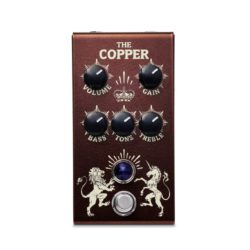 For a young amp company, Victory has had more than its share of, well, victories among their amp releases. These days, though, the company’s overdrive pedals, which are effectively amp-in-a-box versions of the firm’s flagship products, threaten to glean as much attention as their celebrated tube-loaded siblings. Designed in conjunction with Adrian Thorpe of ThorpyFX, the V1 Copper squeezes the essence of Victory’s archetypal AC30-inspired, EL84-driven VC35 Copper amp head into a 5-knob gain and tone-shaping device. And it has the power to transform the right amp in true transatlantic style from a murky mess into a chiming, jangling, crispy, and crunchy overdrive machine.On His Majesty’s Overdrive ServiceLike Victory’s amps, and Adrian Thorpe’s very exacting pedals, the V1 Copper is handsome and built to last. The rugged, folded-steel enclosure measures 4.75″ x 2.5″ x 1.5″ and is slanted gently toward the player to aid control visibility. We’re not sure whether it’s named after the British slang for a penny or a policeman. Either way, the piece that forms the top, front, and back is finished in metallic copper and decorated with a heraldry-style lion and unicorn on either side of the footswitch, a purple amp-style jewel light, and a shining crown between the knobs.The control complement offers a slight modification of the gain, volume, and 3-band EQ control configuration on the VC35 Copper amp. Instead of a mids control, there is a tone control. It’s effectively a stand-in for the cut control on the top-boost AC30s that inspired the VC35 Copper amp. On an AC30, the cut control adjusts the treble at the output stage, and the V1 Copper’s tone control assumes a similar role to very practical effect.”The Copper has a lot of transformative, tone-twisting capabilities. But it’s important to consider the amp you want to revoice before switching the thing on.”Both the input and output are on the crown of the enclosure, with a center-negative 9V DC input between them. The pedal draws a mere 15.3 mA. There’s no room inside for a battery, and the 1.1 pound heft of the thing suggests it’s pretty well packed with quality components. Switching is true bypass.Spend a PennyThe Copper has a lot of transformative, tone-twisting capabilities. But it’s important to consider the amp you want to revoice before switching the thing on. It might be self-evident, but it’s worth noting that a pedal intended to perform like a top-boost AC30 works best with an amp that’s lacking life on the treble side. With a very Vox-like 65Amps London, for instance, the pedal was altogether too much, yielding trebly, brittle results without aggressive EQ adjustments at the amp, which left the London too dark to enjoy once the pedal was switched off again. With a darker, warmer tweed-Deluxe clone, however, the Copper’s transformative powers shone more brightly and usefully. It’s still predisposed to some eviscerating brightness—probably just the way a lot of top boost AC30 fans like it—but the tone knob does a great job of tailoring that treble edge to suit the amp you’re driving.Like the top end, the gain in this pedal comes on strong, especially for a design that’s not categorically a high-gain pedal. Unity gain usually hits at about 8 o’clock on the pedal’s gain and volume controls. By the time I reached noon on each control, I was slamming my amp much harder than I normally would. That said, the Copper’s capacity for gain means you can tap into a lot of really fun, gnarly, cranked-amp-style lead and crunch sounds. And when that’s what a song calls for, the Copper delivers. It doesn’t just excel in high-gain applications, though. At subtler settings, the Copper is great for enlivening a dark amp or adding sparkle and a hint of grind to your basic signal—a lot like a good top-boost AC30 might.The VerdictAt restrained settings, the Copper offers a fast track to the chime and trebly bite of a top-boost preamp and EL84 output tubes. It churns out loads of gnarly overdrive when pushed. But all that available gain means it needs to be used judiciously with intrinsically bright amps. In the right setting, though, and with the right amp, it’s a perfect vehicle for a quick trip to London circa 1965. Victory Amplification V1 The Copper Pedal