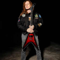 Epiphone and Dave Mustaine unveil the Flying V Custom and a limited-edition Flying V Prophecy.“I have to admit, I knew nothing about the Epiphone Flying V when I was offered my ambassador role with Gibson guitars. I’m happy to say I know a lot more now about Epiphone, the manufacturing, the playability, and the incredible sound that they offer. I am 100% certain the Epiphone signature Dave, Mustaine Flying V is a badass guitar! We made the guitar to my exact hand specifications, identical to my Gibson Flying V. My favorite is the red antique model, but we’re just getting started. It’s mind-boggling to think, ‘if I didn’t look at the headstock, I couldn’t tell this guitar apart from my Gibson’s’.”–Dave Mustaine of MegadethThe new Epiphone Dave Mustaine Flying V Custom is designed to deliver the powerful, heavy sound and exceptional playing performance with a 24.75” scale mahogany neck has a gloriously agile ebony fretboard with 24 medium jumbo frets, an Explorer-style headstock with Grover Mini Rotomatic tuners, and a Graph Tech nut. The mahogany Flying V-style body is equipped with a LockTone Tune-O-Matic bridge ,string-thru Flying V tailpiece, and Dave’s signature Seymour Duncan Thrash Factor pickups that deliver all the high-output mayhem you’d expect from a Mustaine signature axe. The pure metal looks are rounded out with a Black Metallic finish offset with a white binding on the body, neck, and headstock, along with black nickel hardware. A hardshell case is also included.Above (L-R): the Epiphone Dave Mustaine Prophecy Flying V in Aged Dark Red Burst and the Flying V Custom in Black Metallic.The Dave Mustaine Flying V Prophecy is for players looking to set new standards in speed, sound, and technique. Front and center a pair of Fishman Fluence pickups that are custom-voiced for the Epiphone Prophecy Collection deliver three distinct tones- a warm “PatentApplied For” vintage humbucker; a hot modern humbucker; and a shimmering, optimized single-coil sound, all accessed by push/pull Volume and Tone pots. A limited-edition model, theDave Mustaine Flying V Prophecy also includes Grover locking Rotomatic tuners, Epiphone’s LockTone Tune-O-Matic bridge and Stop Bar tailpiece for added sustain, and a Graph Tech nut that boots harmonic content and increases tuning stability. The mahogany neck boasts an ebony fingerboard with 24 jumbo frets and Dave’s custom “D” profile, and is built for the kind of speed and precision that he’s renowned for. With a AAA flame maple veneer top and sinister Aged Dark Red Burst finish, complemented by crushed black nickel hardware for the ultimate metal look. A hardshell case is also included.Icons: Dave Mustaine of MegadethFor more information, please visit epiphone.com.