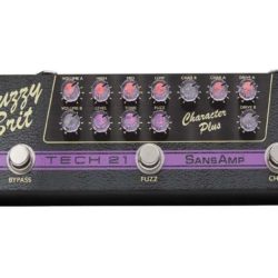 As adjectives go, “cute” and “raging” are usually an odd fit. But apart from, perhaps, a rabid pug with vampire fangs, few things are as deserving of both descriptors as Tech 21’s Fuzzy Brit. This light, solidly built, and miniscule menace machine is an all-analog, 2-channel approximation of Marshall amps from the Bluesbreaker to ’60s plexi and ’70s JMP models—all paired with a cool take on a Fuzz Face. And it’s a satisfying substitute when you can’t lug a massive Marshall head and 4×12 along to the show.At just 7.75″ x 2.75″ x 1″, the Fuzzy Brit is smaller than it looks. It’s slender enough to stuff in your back pocket, which makes its capabilities impressive. Channel A is the cleaner of the two channels. It’s lively, clear, and present, sounds particularly pretty and chimey with a Telecaster, and readily lends sass and energy to mid-scooped tube amps that get flat and characterless at lower-club volumes. Channel B is dirtier. It responds exceptionally well to advanced-gain levels that generate a plexi’s signature punky, fat, and growling distortion, but also excels at recreating the creaky nuances of a loud, unadorned Marshall at lower-gain settings. Speaking of adornments, the Fuzz Face rips and is a superb pairing, particularly in Channel B. The Fuzzy Brit’s one obvious limitation is a lack of independent EQ for each channel. Still, it’s a very convenient and satisfying way to get Marshall might from a backline amp that’s easy on the back and the bank.Tech 21 SansAmp Character Plus – Fuzzy Brit