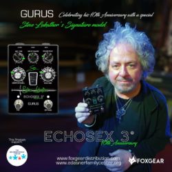 Celebrating the 10th anniversary of their multi-awarded Echosex pedal, Foxgear unveils the Steve Lukather Echosex 3.Steve has used the Echosex since the beginning, since 2014 he’s used it on all of his songs in studio and live, with Toto and Ringo Starr, touring intensively all around the world.Here’s what Steve says about it: “The Echosex 3° is the most important and used piece of gear i have, it’s always ON and it’s big part of my sound.” (S.Lukather 2023)Looking to his pedalboard, and how Luke’s legendary Guitar Tech Jon Gosnell has marked the specific Luke’s settings on it with a green marker, Foxgear wanted to keep this detail into the new signature model and share Luke’s fav setting as well. Foxgear group and Luke, wanted to celebrate their long standing friendship and professional relationship with this new product, Plus we have involved the Ed Asner Family Center For Autism, a LA based Charity founded by legendary Actor Ed Asner, supporting autistic children and their families.Gurus/Foxgear will proudly be donating part of the proceeds of the Luke’s Signature Echosex 3 to support this worthy charity. Features latest version of our multi-awarded Echosex Hi-Voltage tube preamp section faithfully reproducing the Binson Echorec preamp. Simple use simulating only one Echorec playback head that can be adjusted in delay time. Self-calibrating Tap Tempo. 100% Analog signal path Relay assisted true bypass 10th Anniversary Edition Steve Lukather’s Signature Donating to Ed Asner’s Family Center for Autism More info at foxgeardistribution.com. $429.00 USD.
