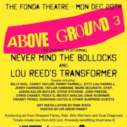 Anthony Kiedis (RED HOT CHILI PEPPERS) and Dexter Holland (THE OFFSPRING) were the surprise guest musicians who performed last night (Monday, December 20) at the third “Above Ground” benefit concert founded by guitarists Dave Navarro (JANE’S ADDICTION) and Billy Morrison (BILLY IDOL) at the Fonda Theatre in Hollywood, California. They joined an all-star bill that included Perry Farrell (JANE’S ADDICTION), Etty Lau Farrell, Corey Taylor (SLIPKNOT), Mark McGrath and Franky Perez. The event was host Dr. Drew Pinsky and included an art installation by Risk Rock.