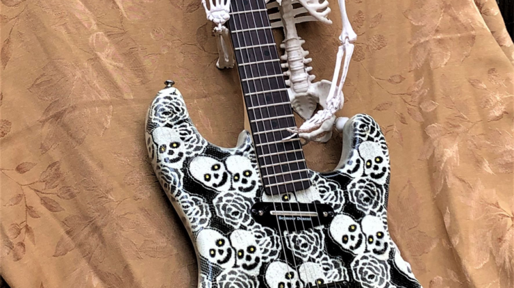 While this could be viewed as a Halloween guitar, I think of it more as a skull guitar for your everyday skull guitar needs. As we approach October, the power of the skull only increases!