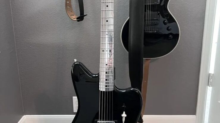 I added some standard pots and knobs and Schaller strap locks, and it was done. I’ve got Ernie Ball Not Even Slinky .012–.056 strings on there (since the guitar lives in C standard), which are just fat enough to not be floppy, without feeling like telephone lines. I think the cool kids use even heavier strings, but these work fine, and I stopped being cool a long time ago anyway.
