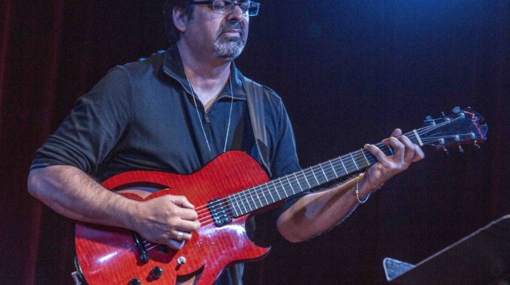 In a sense, not knowing what’s going to come up—being in an almost constant state of experimentation and discovery—is indicative of Abbasi’s overall approach as well, especially as that relates to incorporating Indian-classical concepts into a jazz context. “I wrote a book for Hal Leonard, New Dimensions in Jazz Guitar: Expand Your Improvisatory Consciousness, and I am continually working on the stuff that I wrote because I didn’t master it,” he says. “These are concepts that contain a larger picture of music that takes a lot of evolution to get through. That book talks specifically, among other things, about how Indian music has influenced me on a street level. I didn’t study Indian music, but I’ve heard it so much—I’ve played with so many musicians—that I am allowing my intuition to speak through that.”