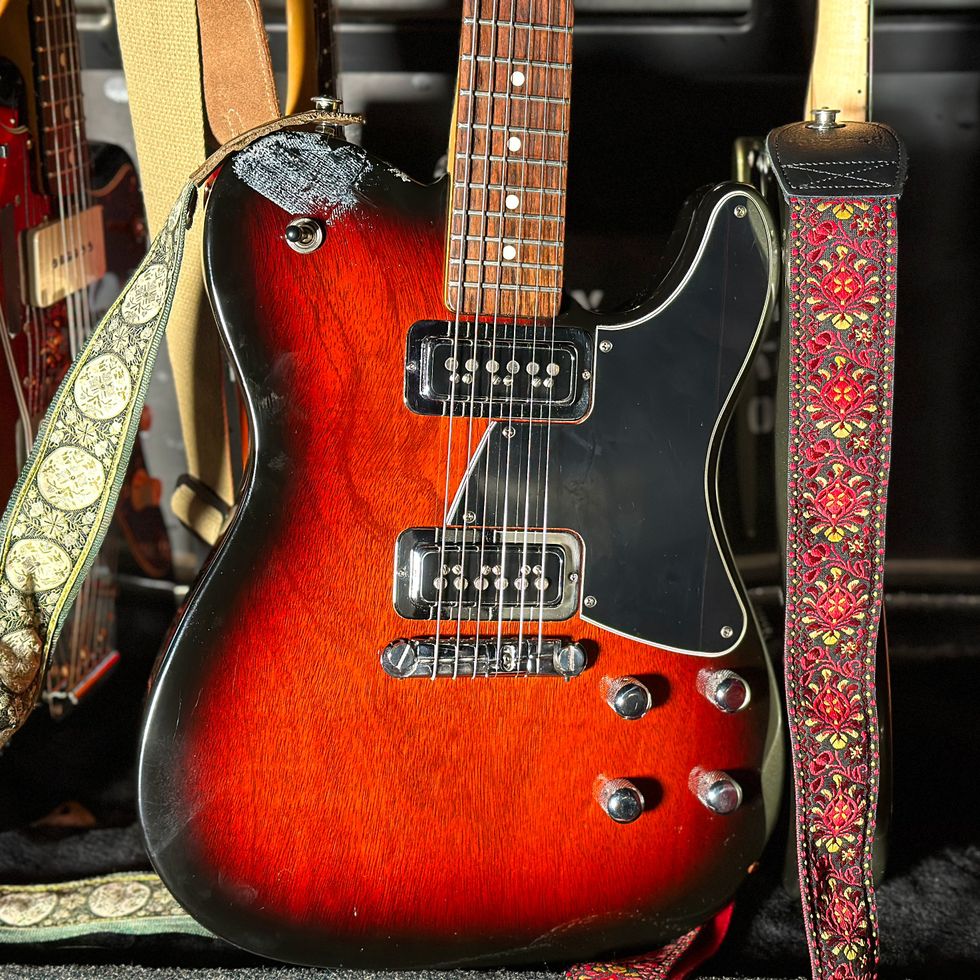 Another one of Kinsella’s causalities to crooks was a late-’90s Fender Tele-Sonic. He reacquired a different chambered Tele when visiting Texas. He uses this one onstage the least, but really enjoys his “dark, dead sound” that makes him feel in “total control.” This quirky Tele has a chambered mahogany body, a maple neck on a rosewood fretboard, a compact 24.75″ scale length, and DeArmond Dynasonic single-coil pickups.