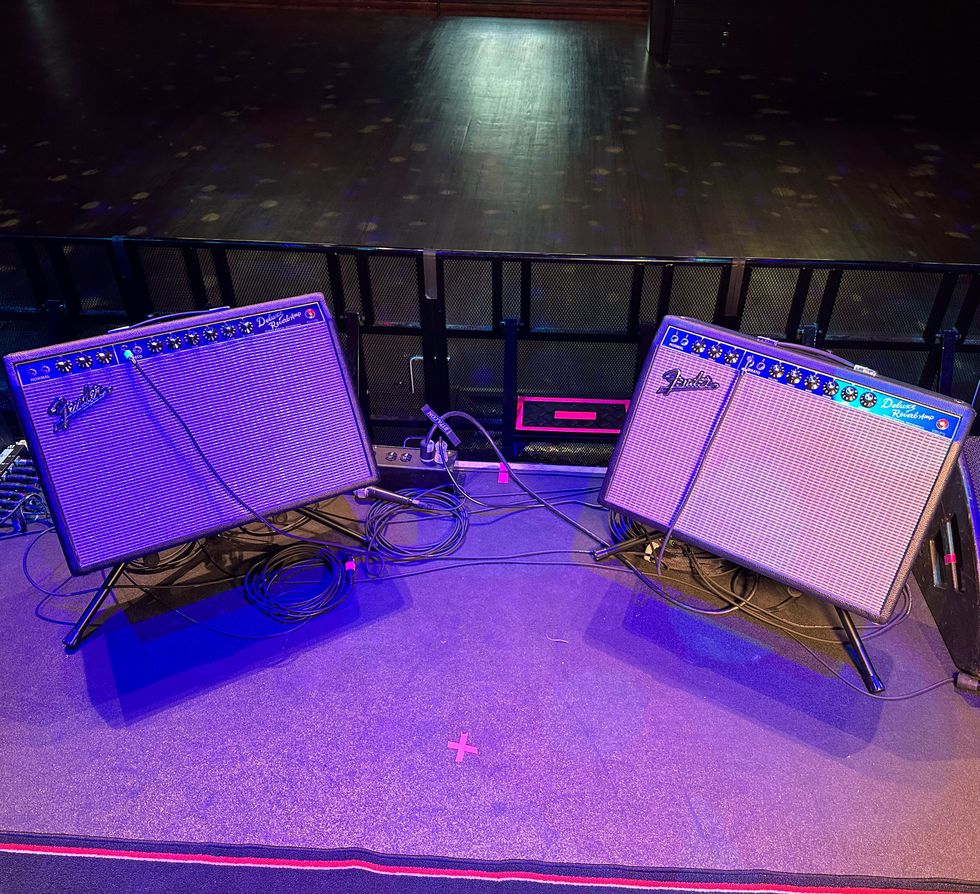 Fenders have long been part of the band’s tone and on this North American run Kinsella used a pair of Fender Deluxe Reverb reissues. He’s plugging into them both to give a fuller, spacier, dreamier stereo effect.