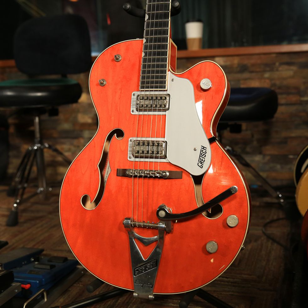 Wells’ sharp 2003 Gretsch 6120 runs TV Jones FilterTron pickups.