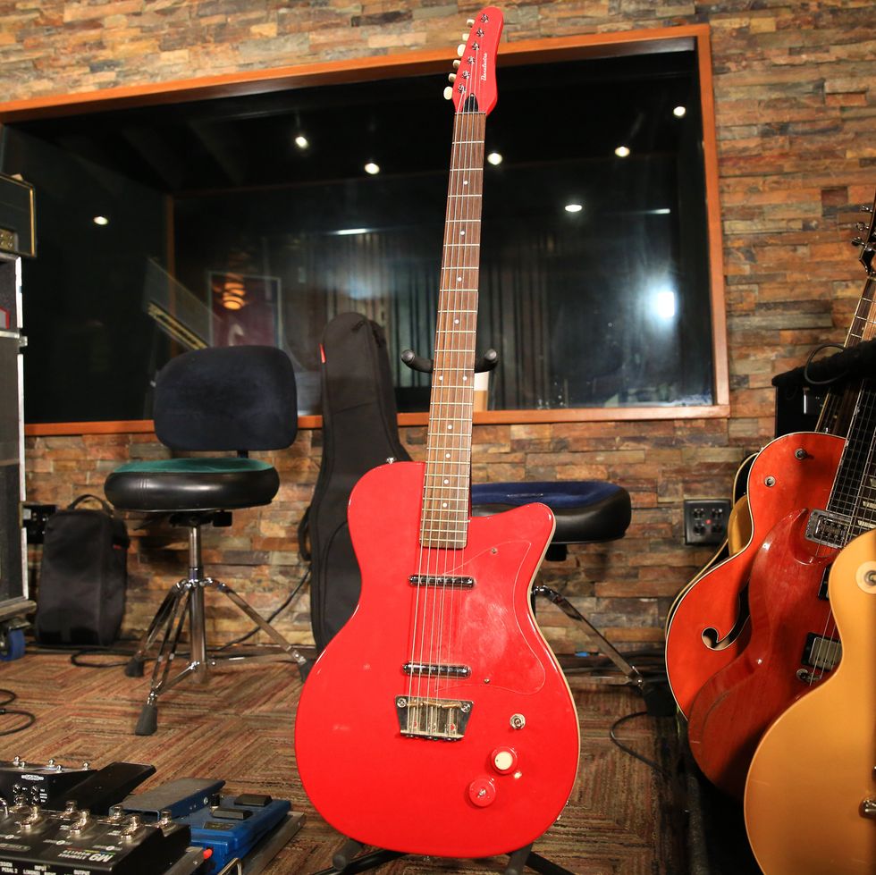 This bloody good 2000s Danelectro Baritone has been upgraded with custom saddles and bridge from Jeff Senn.
