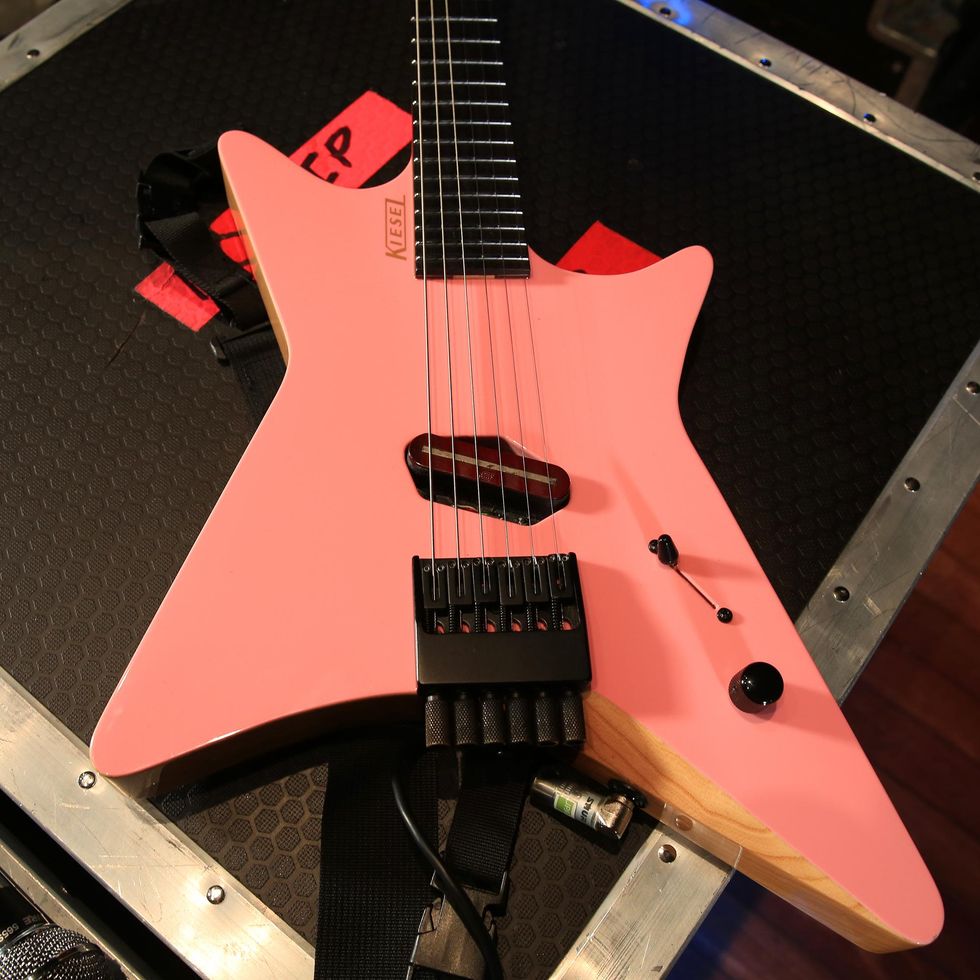 Here’s another Kiesel Type-X, but this one has a Seymour Duncan Antiquity Tele single-coil. Besides the radical visuals these instruments add to the band’s stage production, part of the choice was pragmatic because the lightweight, headless design allows Mat to swing the guitar off his shoulder in a split second and control the Waldorf Iridium synth engine for Existential Reckoning jams.