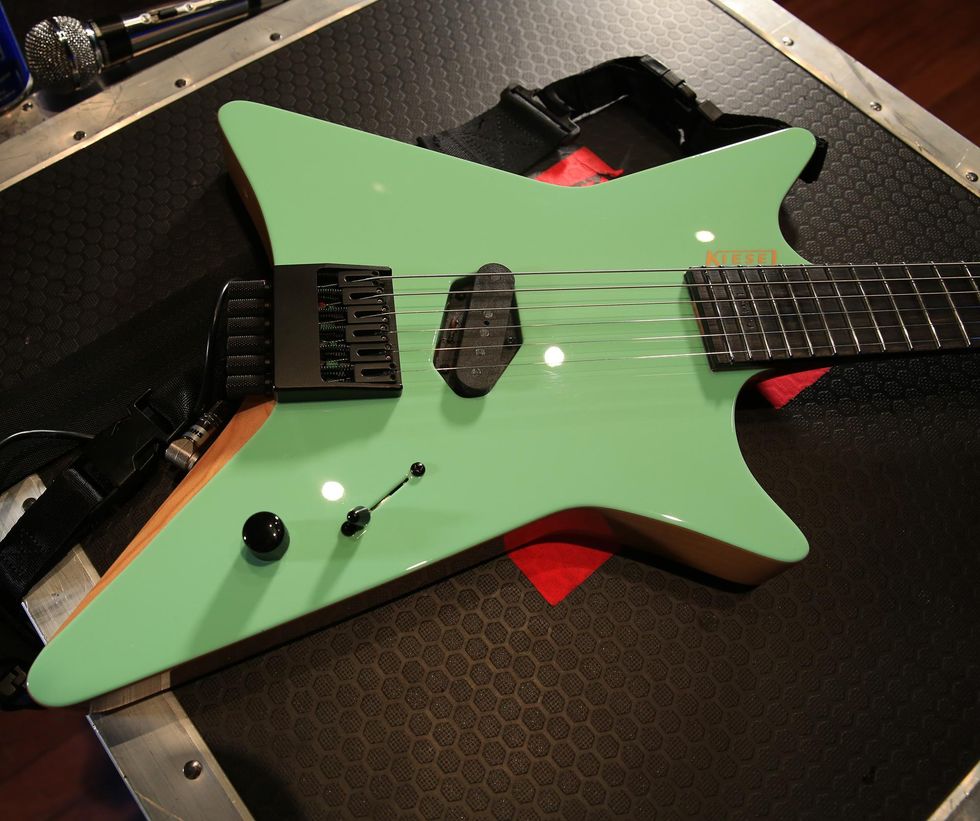 Above is Mitchell’s third Type-X Kiesel. He mentions in the Rundown that “once you give me a guitar, I don’t like to give it back,” so if he has it his way, he’ll start and finish the show with the same X.