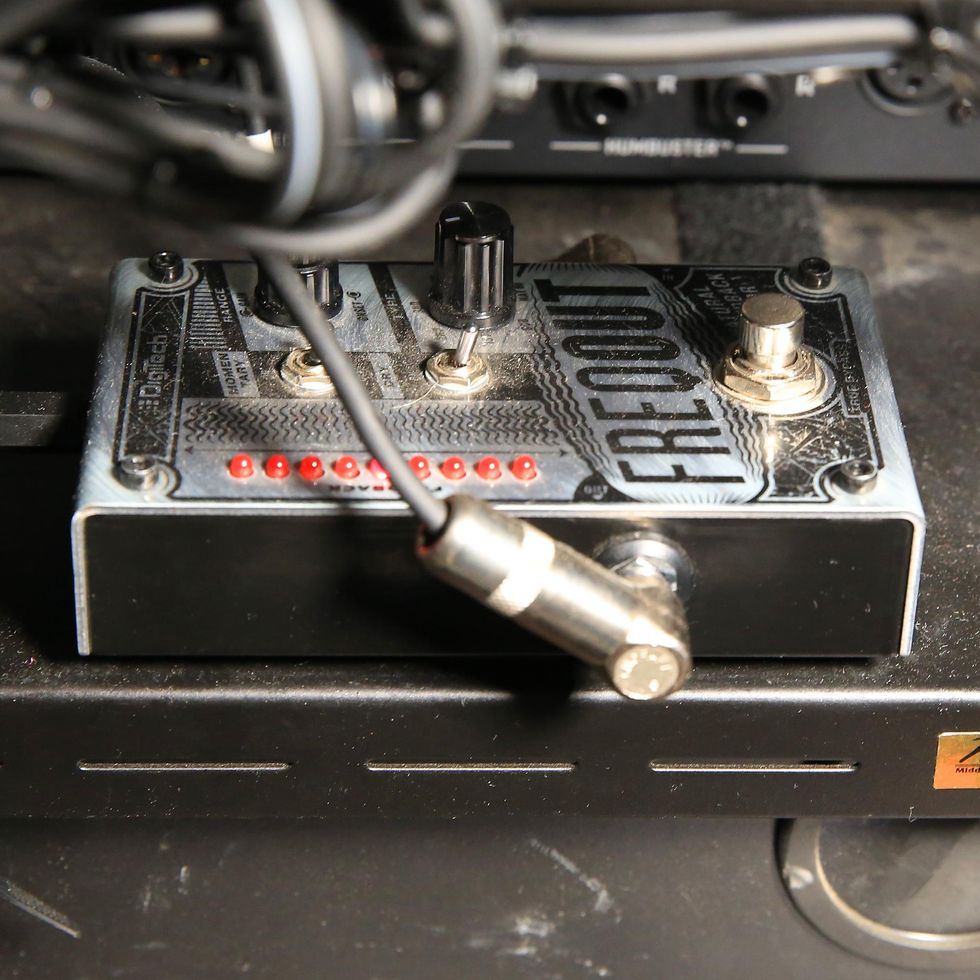 His only guitar-specific hardware outside the Axe-Fx III is this DigiTech FreqOut, to help Mitchell stir up a funnel of feedback.
