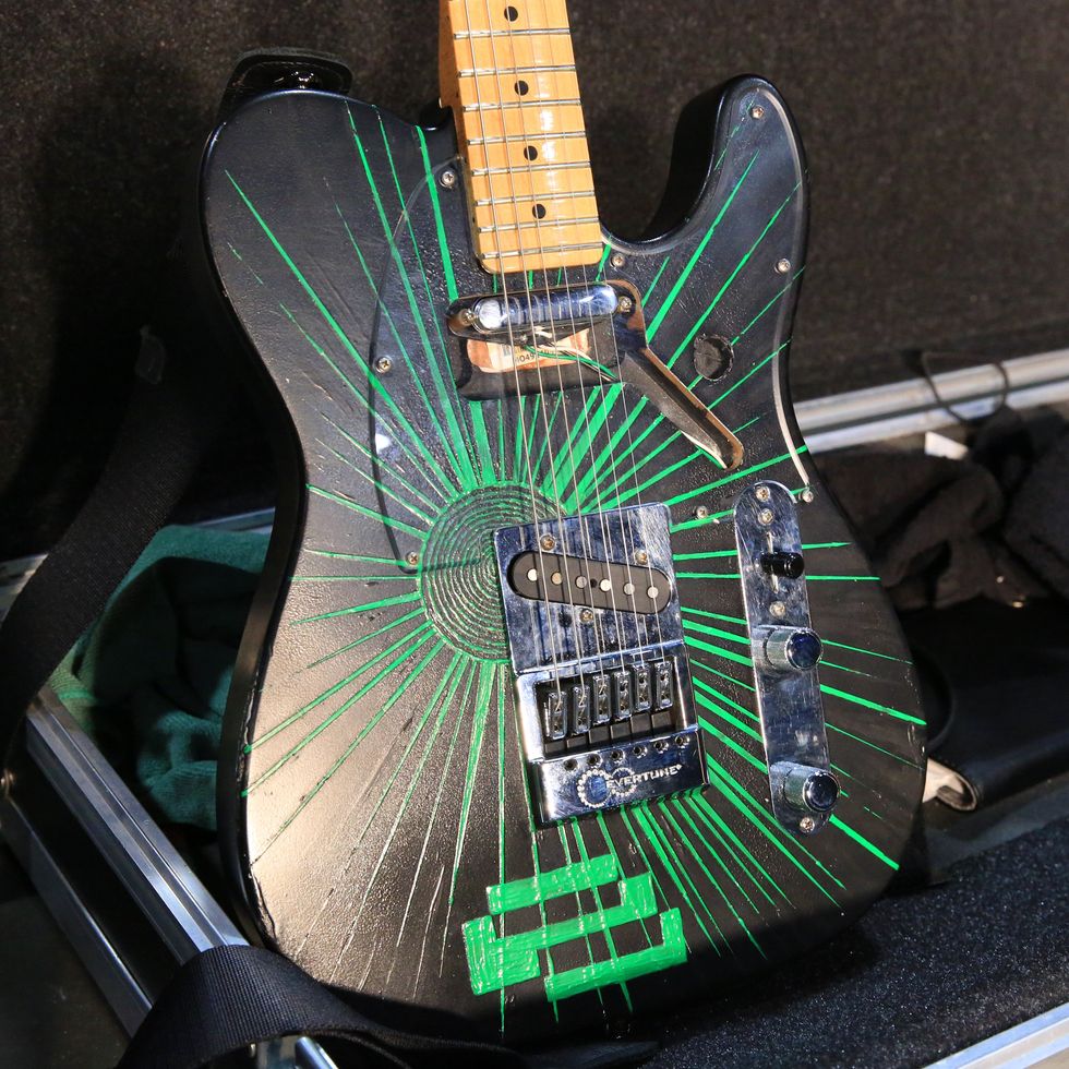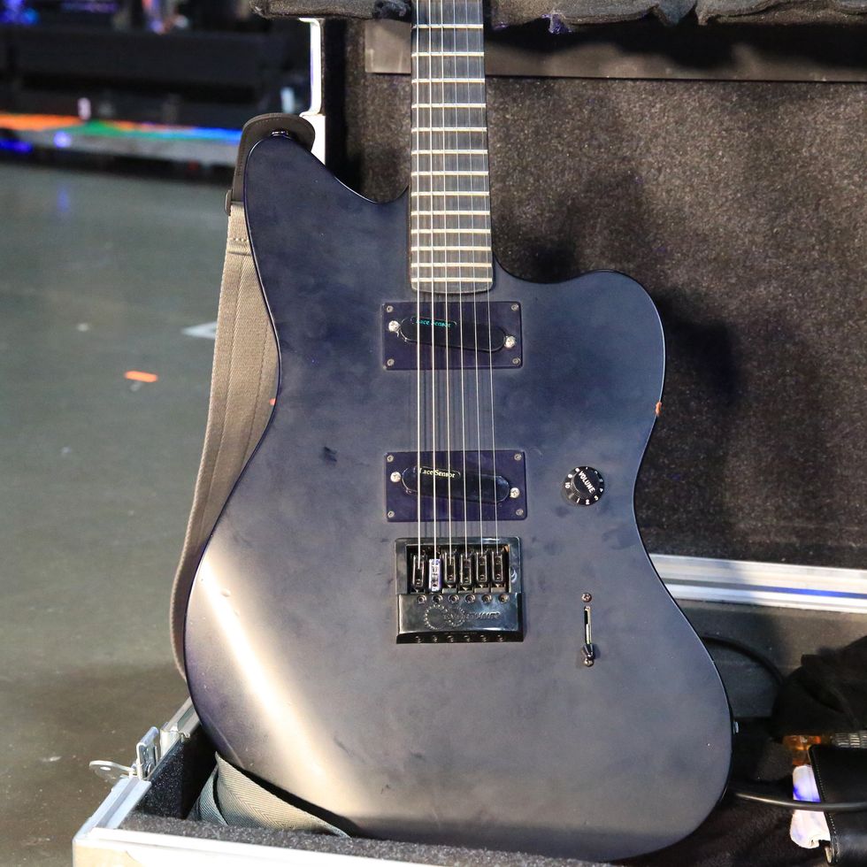 Jeffery Jordan’s first electric was a Strat. He’s long enjoyed the Fender side of things, and one of his main rides for the upcoming tour would be this MIM Fender Telecaster. Two things to note on this T would be its glow-in-the-dark paint job and the addition of the EverTune bridge, making this not only an onstage stunner but a locked-damn hammer always ready to smash. Both Jordan and Stewart exclusively use D’Addario NYXL1052 Light Top/Heavy Bottom strings (.010–.052) on their electrics. They’re normally in standard tuning, but they do explore open-D for a few songs.
