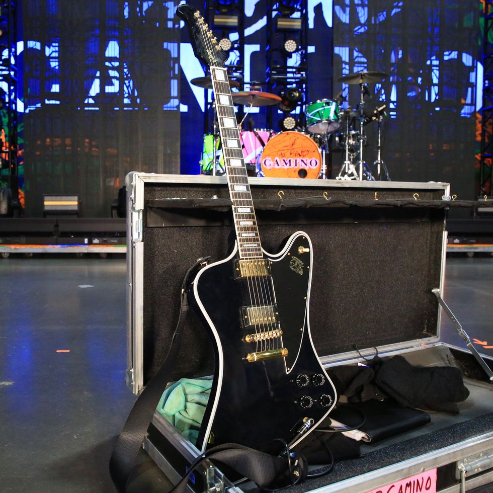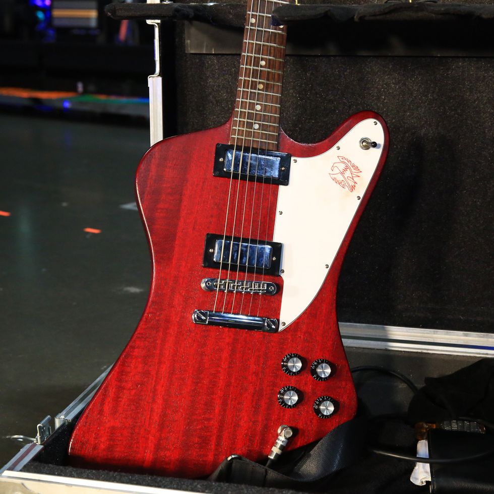 For the first time, Jordan will be hitting the road with a Gibson. Three songs are allocated to this regal raptor—a Custom Shop Firebird Custom, decked out with a mahogany body laced with multi-ply binding, elegant gold hardware, and a set of 498T/490R humbuckers.
