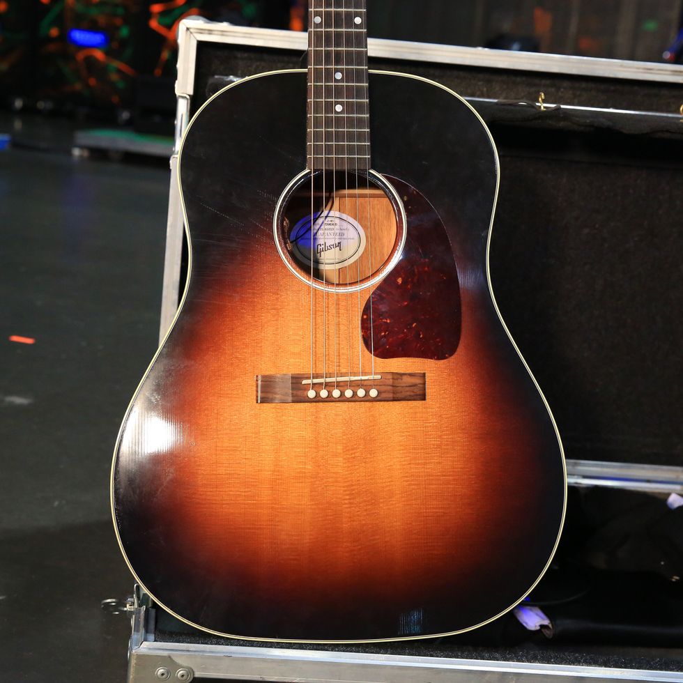 The subtler side of The Band CAMINO is handled by this Gibson J-45 Standard finished in a smoldering tobacco burst. It runs through their Neural DSP Quad Cortex thanks to the included L.R. Baggs VTC electronics.