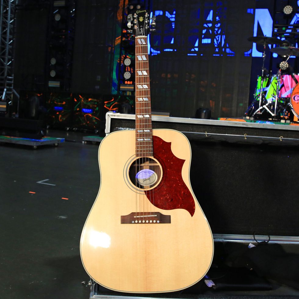 During a quick stop at a morning radio show in L.A., the band left their acoustics in the rental vehicle. When they returned from the brief session, the unattended acoustics were gone. Stewart lost an Epiphone Masterbilt and Jordan was out a Fender flattop. Before an in-store performance and album signing at Nashville’s beloved Grimey’s, Gibson offered Stewart a chance to check out this Gibson Hummingbird Studio Rosewood. Needless to say, he’s not giving it back nor letting it out of his sight.