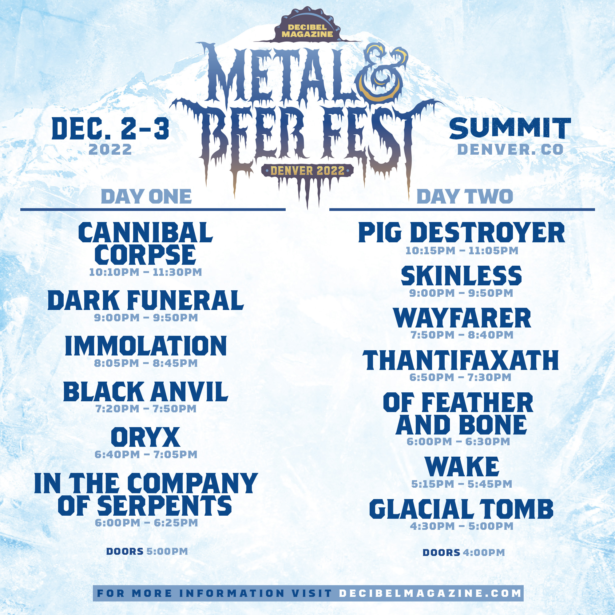 The post Set Times Announced for Decibel Magazine Metal & Beer Fest: Denver 2022! appeared first on Decibel Magazine.
