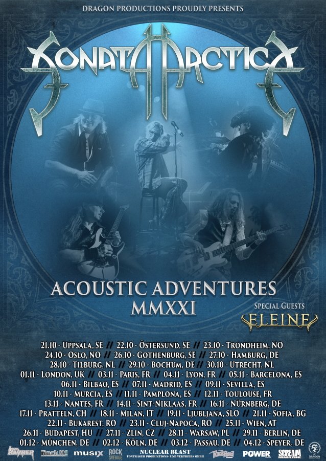And this tour, dubbed the “Acoustic Adventures MMXXI” tour, is hopefully going to happen in autumn. It’s been a while since SONATA ARCTICA toured Europe, the last time being in 2019. To promote their “Acoustic Adventures – Volume One” release, the band will embark on a journey through 17 European countries. Support will be provided by Swedish hopefuls ELEINE, who will also be presenting an acoustic set.