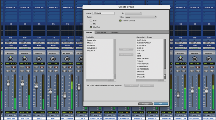 Following the hypothetical example above, I’m going to show you how to create a VCA within Pro Tools and assign it to tracks of your choosing. Remember, every DAW has its own idiosyncratic way of creating and setting up a VCA channel, so be sure to consult your help section and/or read your instruction manual. Key commands may differ, but the process is essentially the same.
