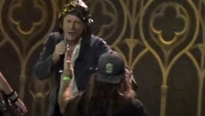 Watch: IRON MAIDEN's BRUCE DICKINSON Physically Removes Fan From Stage At Anaheim Concert