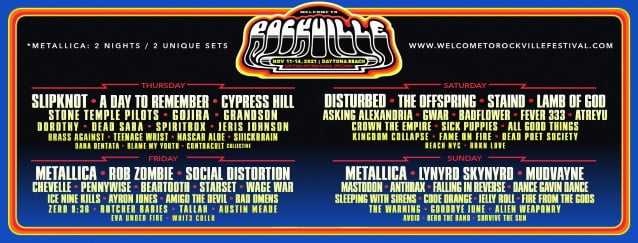 Along with two nights of METALLICA, this year’s Welcome To Rockville featured DISTURBED, SLIPKNOT, A DAY TO REMEMBER, LYNYRD SKYNYRD, LAMB OF GOD, SOCIAL DISTORTION, MASTODON and many others. The event was also livestreamed on Danny Wimmer Presents‘s Twitch channel, featuring select performances, interviews and behind-the-scenes content at twitch.tv/DWPresents.